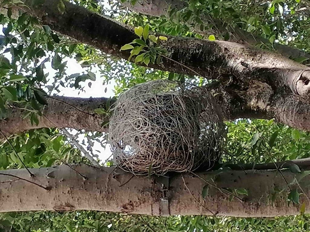 川沿いの公園の枝の上に多数置いてあった置き物です。鳥の巣のイメージです。20241221