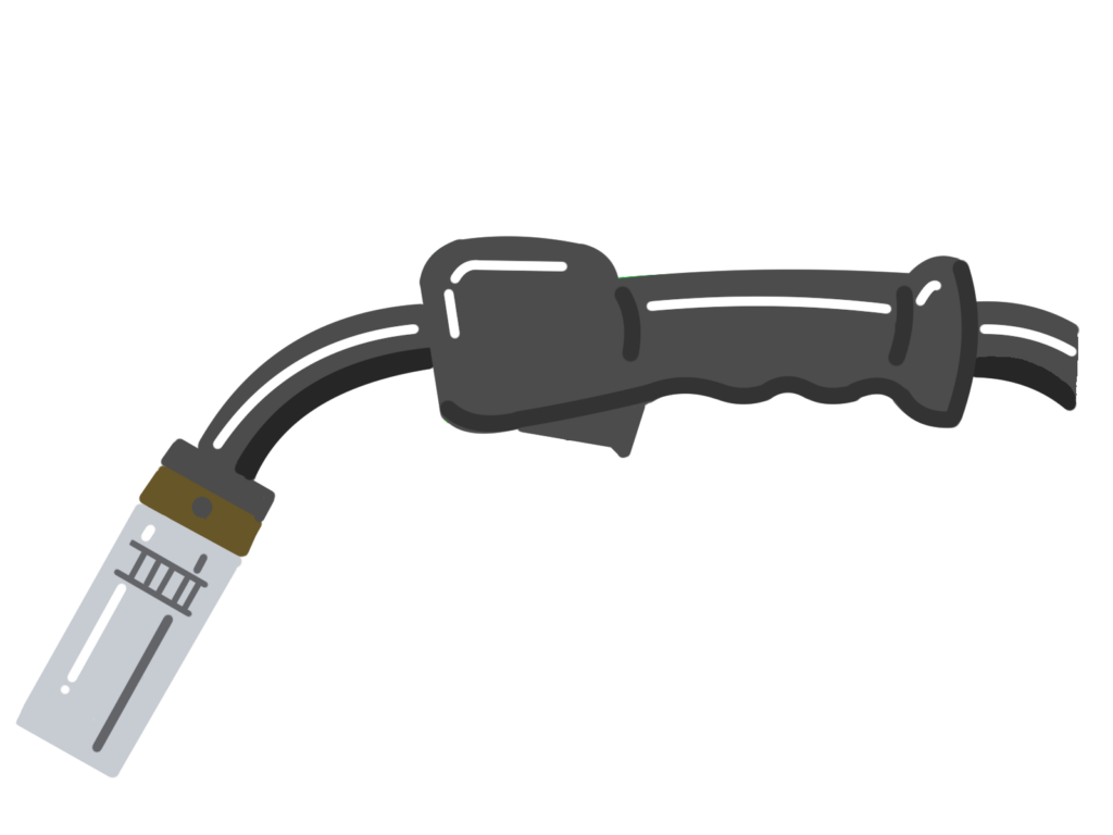 アルミニウムのMIG溶接時に使用するトーチです。